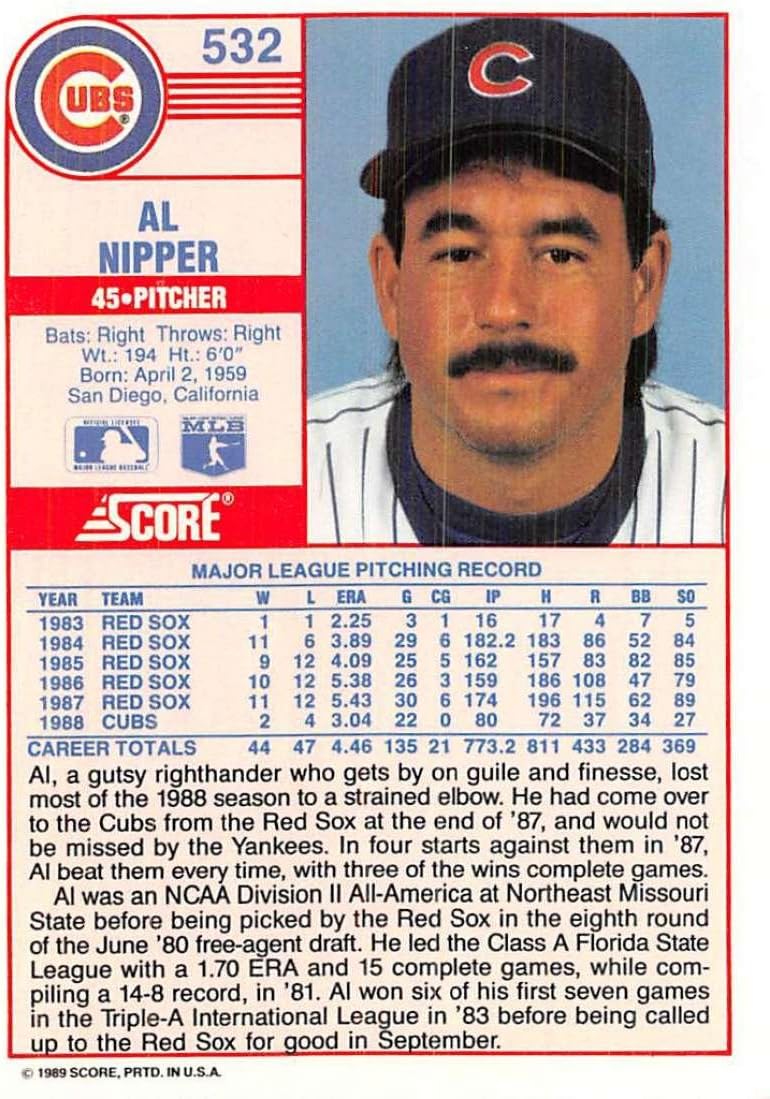 Amazon Com 1989 Score Baseball 532 Al Nipper Chicago Cubs Official Mlb Trading Card Collectibles Fine Art