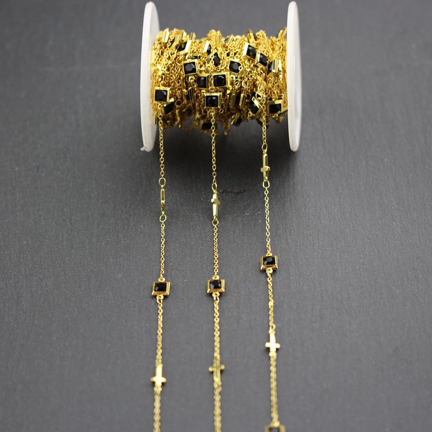 Satin Al 6mm Tel Sarili Altin Kaplama Capraz Bakir Zincirler Taki Siyah Cam Kare Sekli Boncuk Kolye Malzemeleri Tl211 46 Dhgate Comda