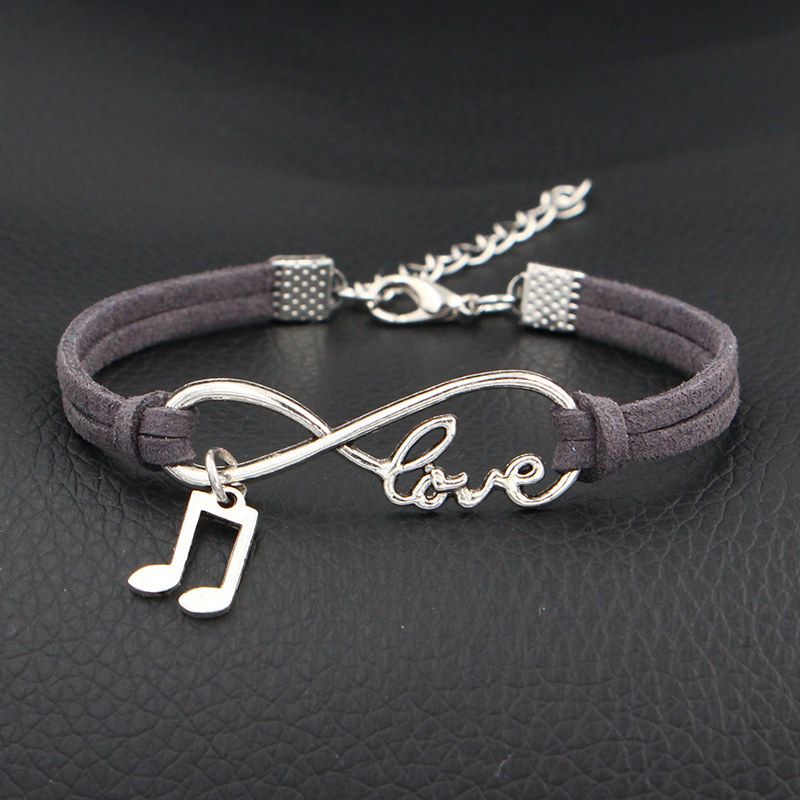 Satin Al Toptan Yapma Malzemeleri Gri Deri Halat Manset Bileklik Bilezik Gumus Kaplama Infinity Ask Muzik Not Melody Charm Kadin Erkek Taki Tl13 01 Dhgate Comda