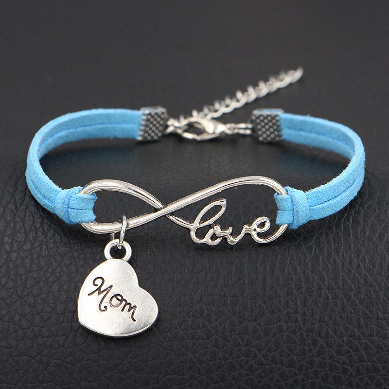 Satin Al Toptan Yapma Malzemeleri Mavi Deri Halat Manset Bileklik Bilezik Gumus Kaplama Alasim Infinity Ask Annem Kalp Kolye Kadin Erkek Taki Tl9 91 Dhgate Comda