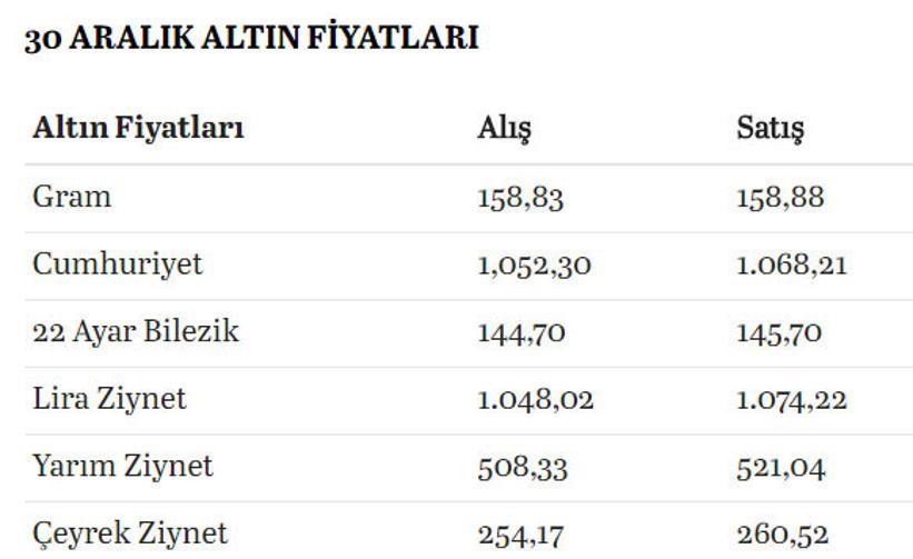 Ceyrek Altin Fiyatlari 31 Aralik Ta Ne Kadar Dun Altin Alanlar 10 Lira Karda