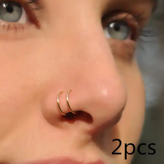 2 Adet Dolu Sahte Burun Halkasi El Yapimi Cift Manset Hicbir Piercing Punk Moda Basit Gobek Takisi Unisex Fake Nose Ring Nose Ringfake Nose Aliexpress