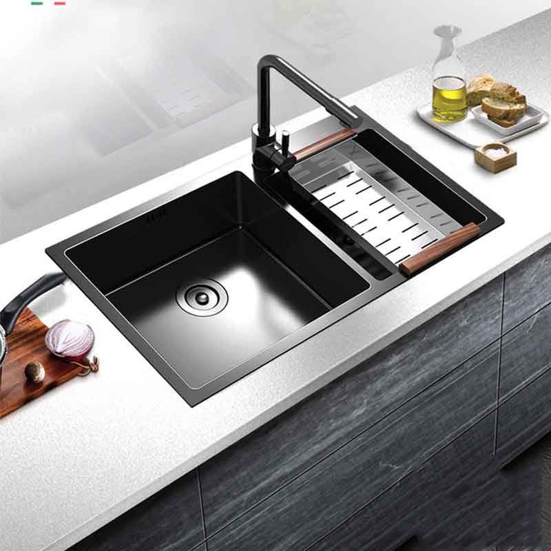 Satin Al 75 40cm Yeni Cift Gozlu Evye Nanometre Antibakteriyel Siyah 304 Paslanmaz Celik Nano Teknoloji Siyah Cift Lavabo Musluk Tl491 67 Dhgate Comda