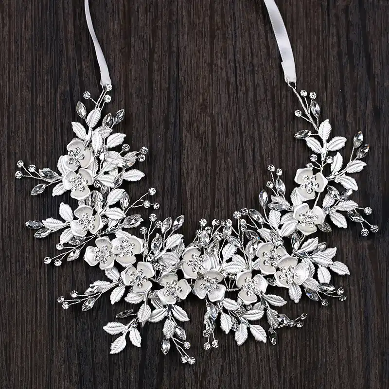 El Yapimi Gumus Renk Serit Rhinestone Kristal Yapraklar Cicek Gelin Taci Kafa Bandi Cicekler Basligi Dugun Sac Aksesuarlari Sac Takisi Aliexpress