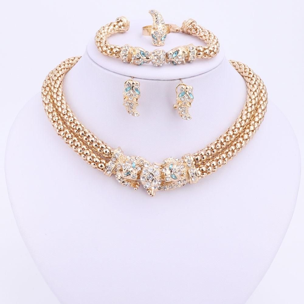 Satin Al Kadinlar Icin Taki Setleri Cift Zincir Leopar Kristal Altin Kaplama Kolye Kupe Bilezik Yuzuk Gelinlik Aksesuarlari Tl68 33 Dhgate Comda