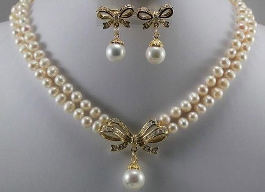 Satin Al 18 K Sari Altin Gp 6 7mm Beyaz Inci Kabuk Inci Kolye Kolye Kupe Seti Tl220 41 Dhgate Comda