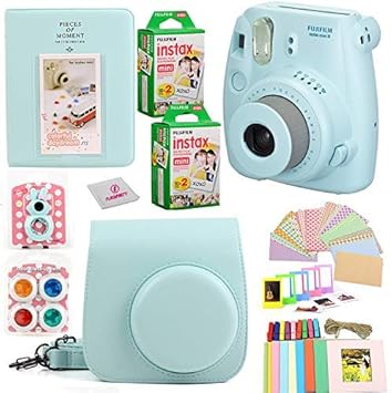 Amazon Com Fujifilm Instax Mini 9 Instant Printing Camera Bundle Complete W Fuji Instant Mini 9 Film 40 Pack Colorful Picture Frames Stickers Selfie Mirror 10pc Kit Ice Blue Camera Photo