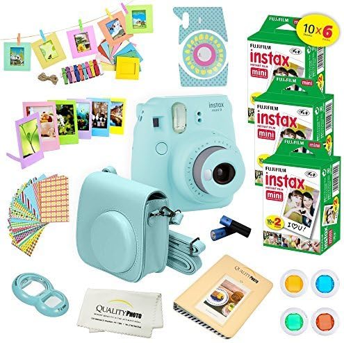 Amazon Com Fujifilm Instax Mini 9 Instant Camera Ice Blue W Fujifilm Instax Mini 9 Instant Films 60 Pack A14 Pc Deluxe Bundle For Fujifilm Instax Mini 9 Camera Camera Photo