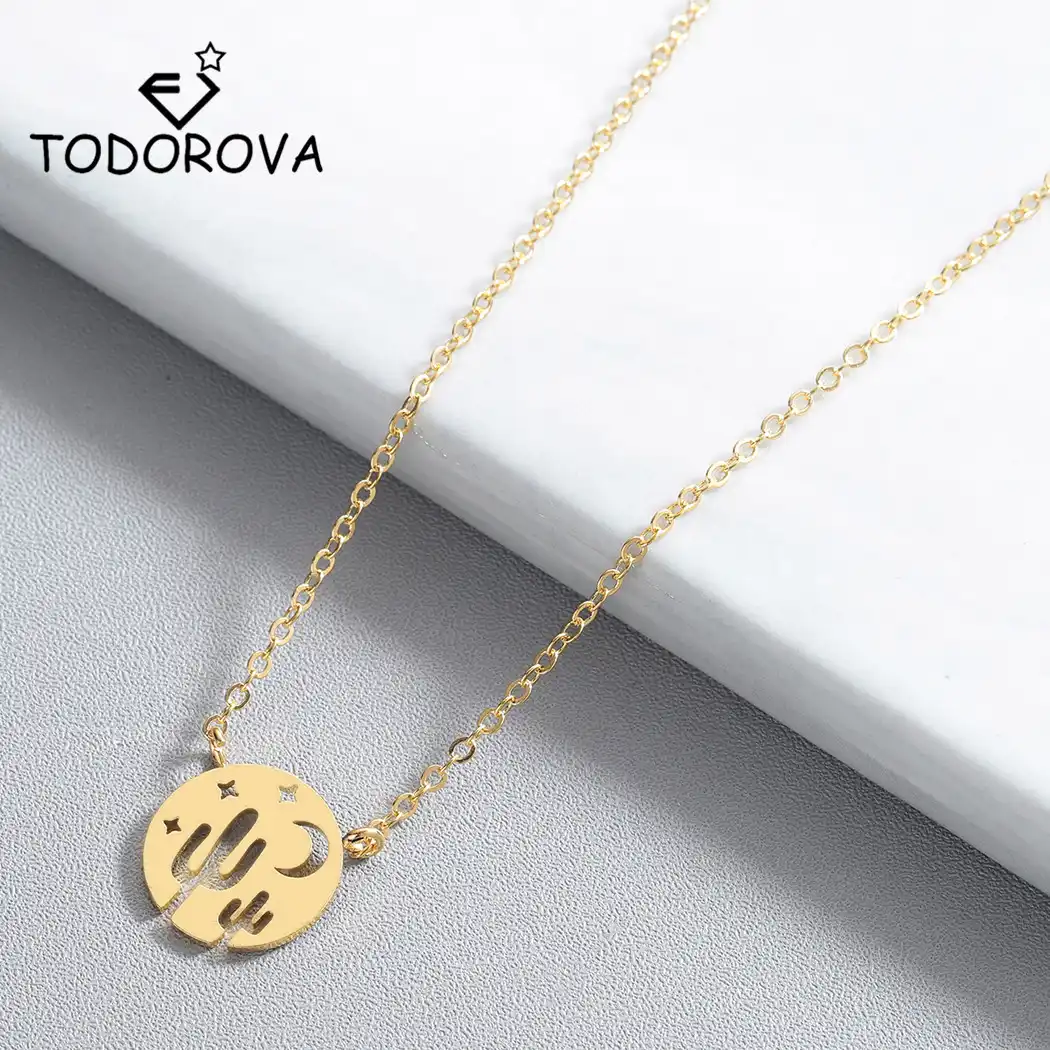 Todorova Yuvarlak Col Gece Cekicilik Kolye Gul Altin Gokyuzu Hilal Ay Yildiz Kaktus Kolye Kolye Kadinlar Icin Zarif Taki Sallantili Kolye Aliexpress