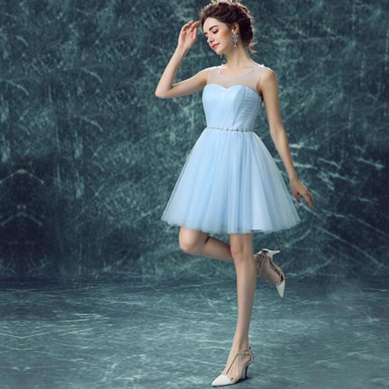Satin Al Ucuz Acik Mavi Mezuniyet Elbiseleri Sheer Ekip Boyun Kolsuz Pilili Dantelli Kisa Mini Balo Parti Elbise Dantel Up Geri Mezuniyet Elbisesi Tl694 15 Dhgate Comda