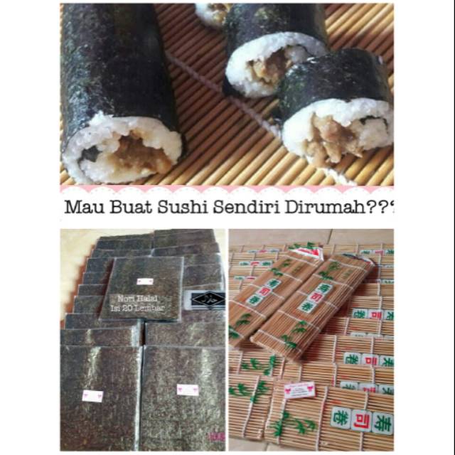 Paket Sushi Nori 20s Bambu Penggulung Halal Kimbap Bento Rumput Laut Murah Shopee Indonesia