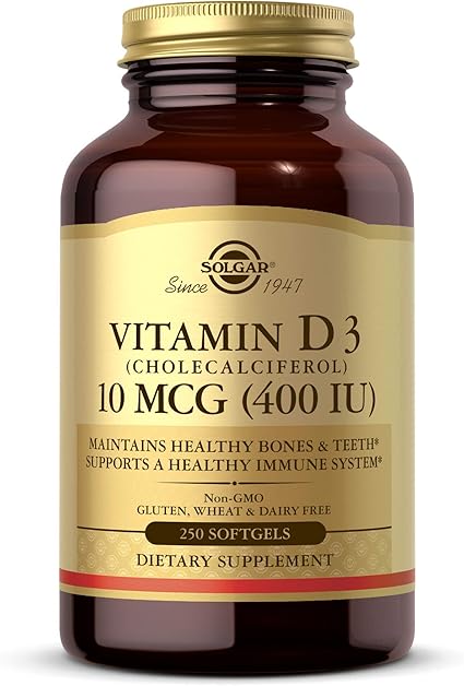 Amazon Com Solgar Vitamin D3 Cholecalciferol 10 Mcg 400 Iu 250 Softgels Helps Maintain Healthy Bones Teeth Immune System Support Non Gmo Gluten Free Dairy Free 250 Servings Health Personal Care