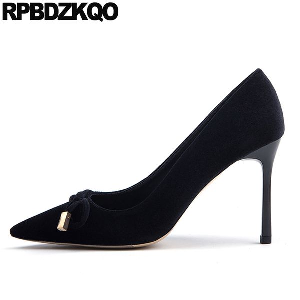 Satin Al Ayakkabi Buyuk Boy Stiletto 4 34 Kadife 10 42 2019 Kadin Pompalari Yuksek Topuklu Sivri Burun Aksam Yay Siyah 33 Sarap Kirmizi Chic 3 Inc Yeni 74 83 Dhgate Com Da